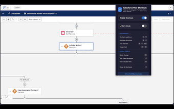 Salesforce Flow Shortcuts är en kostnadsfri webbläsartillägg för Chrome som förbättrar användarupplevelsen i Salesforce Flow Builder. Tillägget erbjuder en rad användbara funktioner som tangentbordsgenvägar för navigering, snabb tillägg av element och kraftfulla debuggningsverktyg. Med hjälp av genvägar kan användare enkelt navigera upp och ner i flöden, samt byta mellan grenar med hjälp av enkla tangenttryckningar. Dessutom erbjuder den visuella fokusindikationer för att underlätta användarens spatiala medvetenhet under arbetet.
